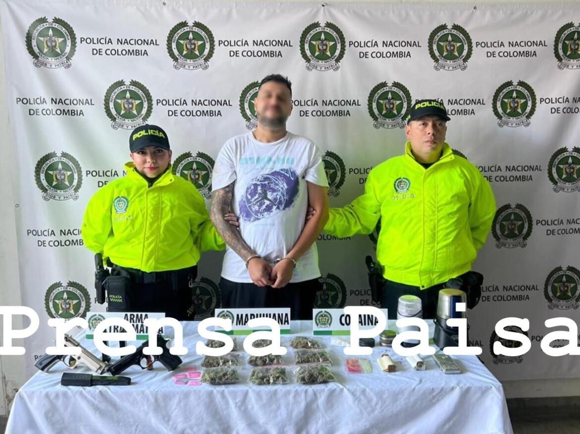 El hombre de 37 años fue presentado ante la autoridad competente por los delitos de fabricación, trafico o porte de estupefacientes y porte ilegal de armas de fuego”.