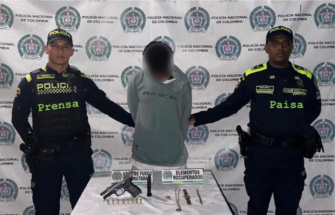 En el procedimiento fue capturada esta persona por el delito de tráfico, fabricación o porte de armas de fuego y hurto agravado y calificado, fue incautada un arma de fuego y recuperados los elementos hurtados, tres joyas de oro y un reloj, los cuales fueron dejados a disposición de la autoridad competente”.